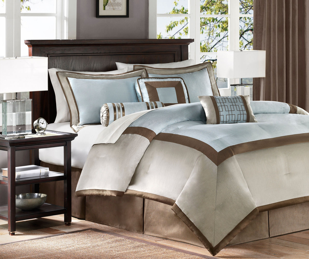 Product Name: Blue and brown comforter sets queen sales