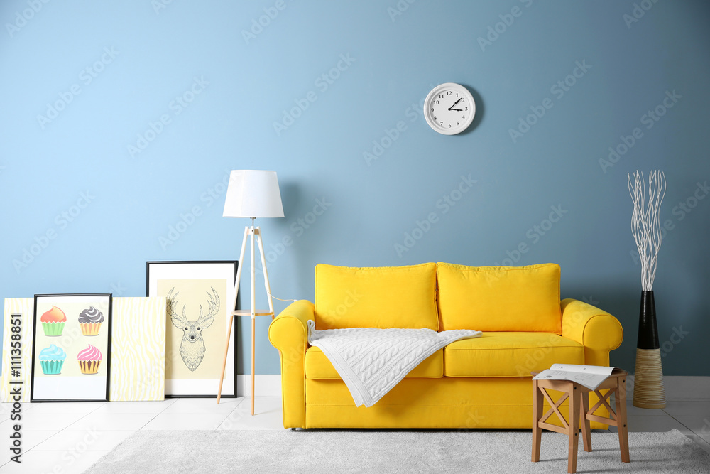 Product code: Blue wall yellow sofa sales