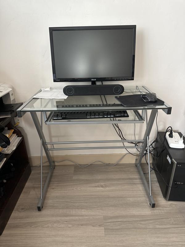 Product code: Saracina home l shaped glass and metal corner computer desk silver sales