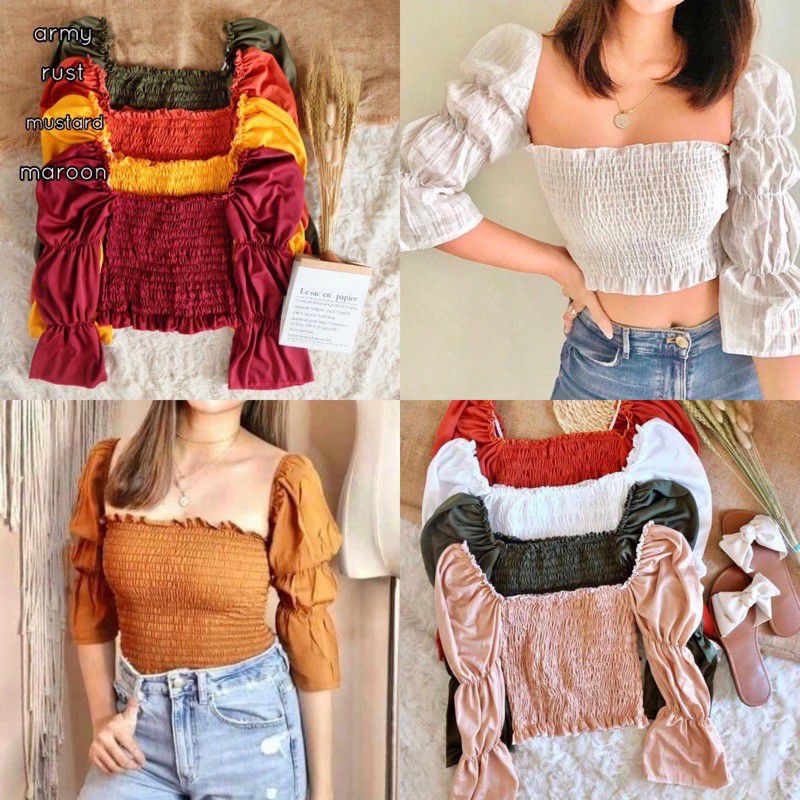 Product Name: Smocked puff sleeve top sales