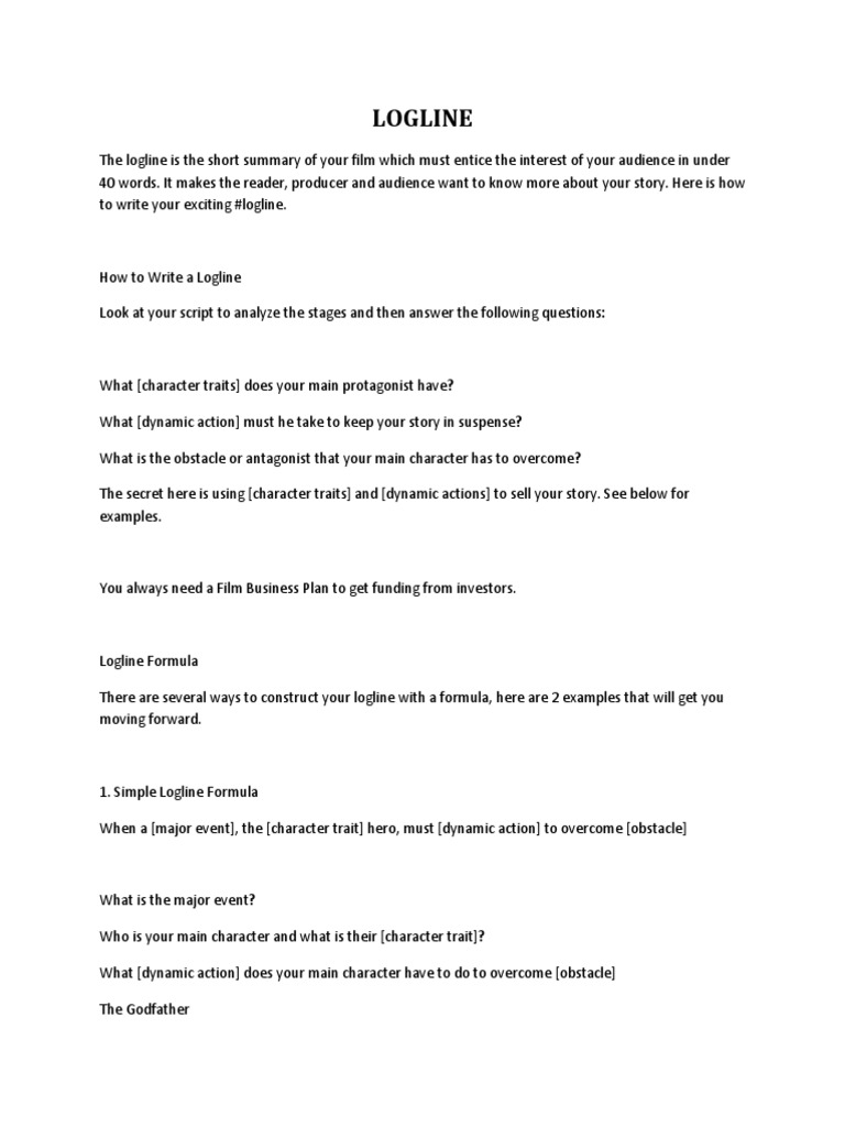 How to Write a Logline that Producers Love Log line Examples sales, How To Create A Logline Writing Goals sales, How to Write a Logline WriteOnSisters sales, How to Write a Logline that Producers Love Log line Examples sales, Key Elements of the Perfect Logline JC Tarp Books Editing sales, Logline Everything You Need to Know NFI sales, Top Tips on How to Write a Logline by Rough Drafts Medium sales, How to Write a Logline Video and Screenshots Included Celtx Blog sales, Script Tip How to Write a Logline sales, Friday Office Hours Call for loglines by Courtney Maum sales, How To Write a Killer Logline That Sells Your Story sales, How To Write A Logline A Complete Guide For Screenwriters Filmstro sales, What are loglines and do they even matter sales, What is a Logline and How Do You Write One Go Teen Writers sales, WRITING LOGLINES PPT sales, Got Logline Troubles Try This Free Online Generator sales, How to Write TV Show Loglines Examples Formula TV Writing sales, The Logline A Screenwriting Tool that Helps Students with Textual sales, What is a Logline with FREE Logline Formula Template sales, How to write a story logline without going crazy Sandra Gulland sales, LOGLINE PDF Hero Luke Skywalker sales, How To Write Effective Loglines ScreenCraft sales, How to write a logline r Screenwriting sales, The Simple Guide to Writing a Logline ScreenCraft sales, Loglines The Long and Short on Writing Strong Loglines sales, Loglines How to use the Killogator Formula to Write a Killer Logline sales, How to Write a STRONGER LOGLINE 3 Things You Must Have sales, 75 Logline Examples Ideas To Inspire Your Next Story sales, 7 Tips for Film Pitching To Get Your Film Noticed sales, Ultimate List of Film Logline Examples 2024 FilmDaily.tv sales, How and Why to Write a Logline For Your Story WRITERS HELPING sales, How To Write a Logline Filmmakers Academy sales, Smarthouse 5 Rules for Crafting Loglines That Sell Features Film sales, How to Write a Logline for your Screenplay sales, WEEK 9 WRITING A LOGLINE My Benjamin Button Life sales.