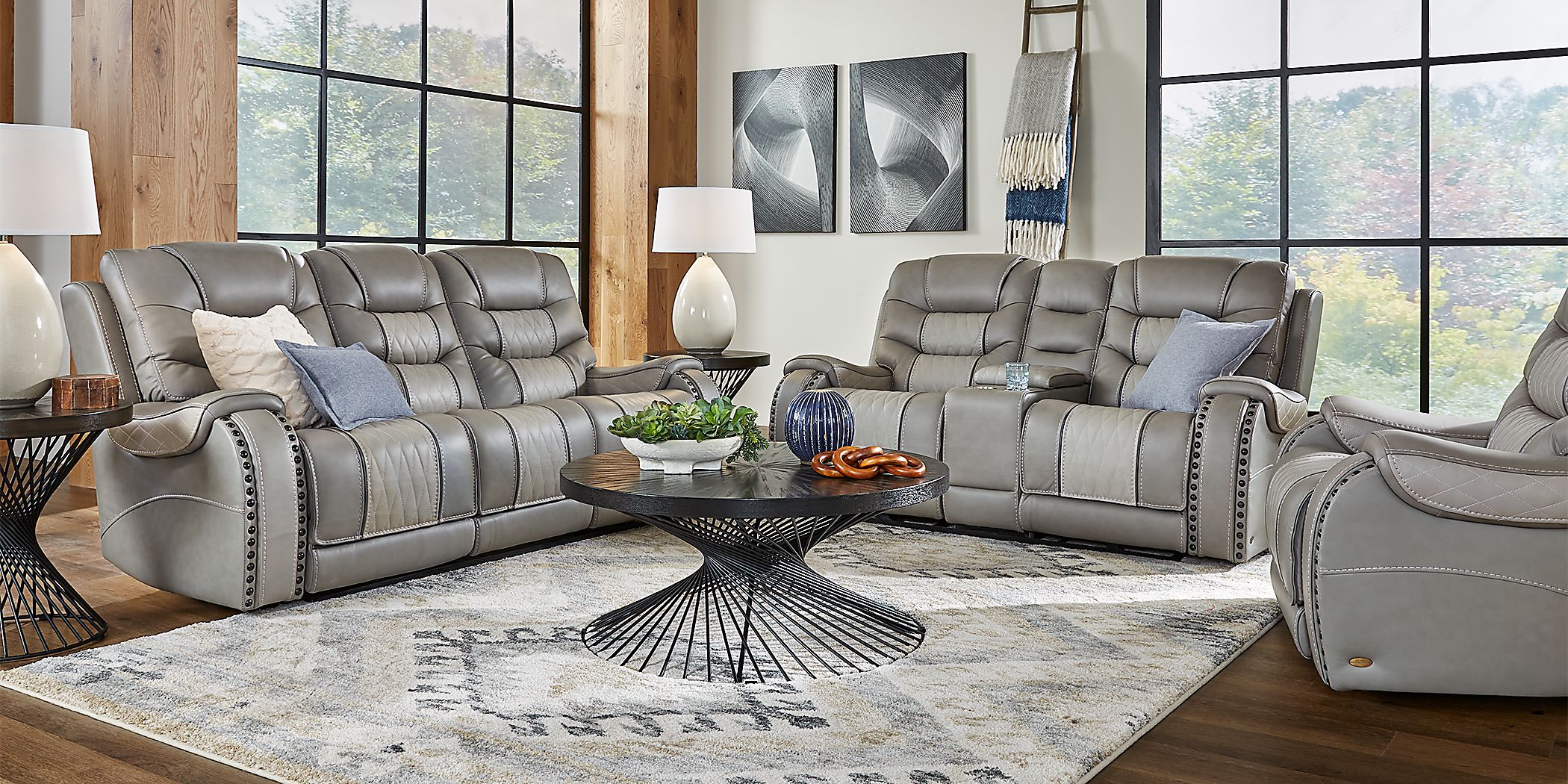Product Name: Gray leather living room sets sales