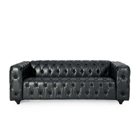Product Name: Black leather tufted loveseat sales