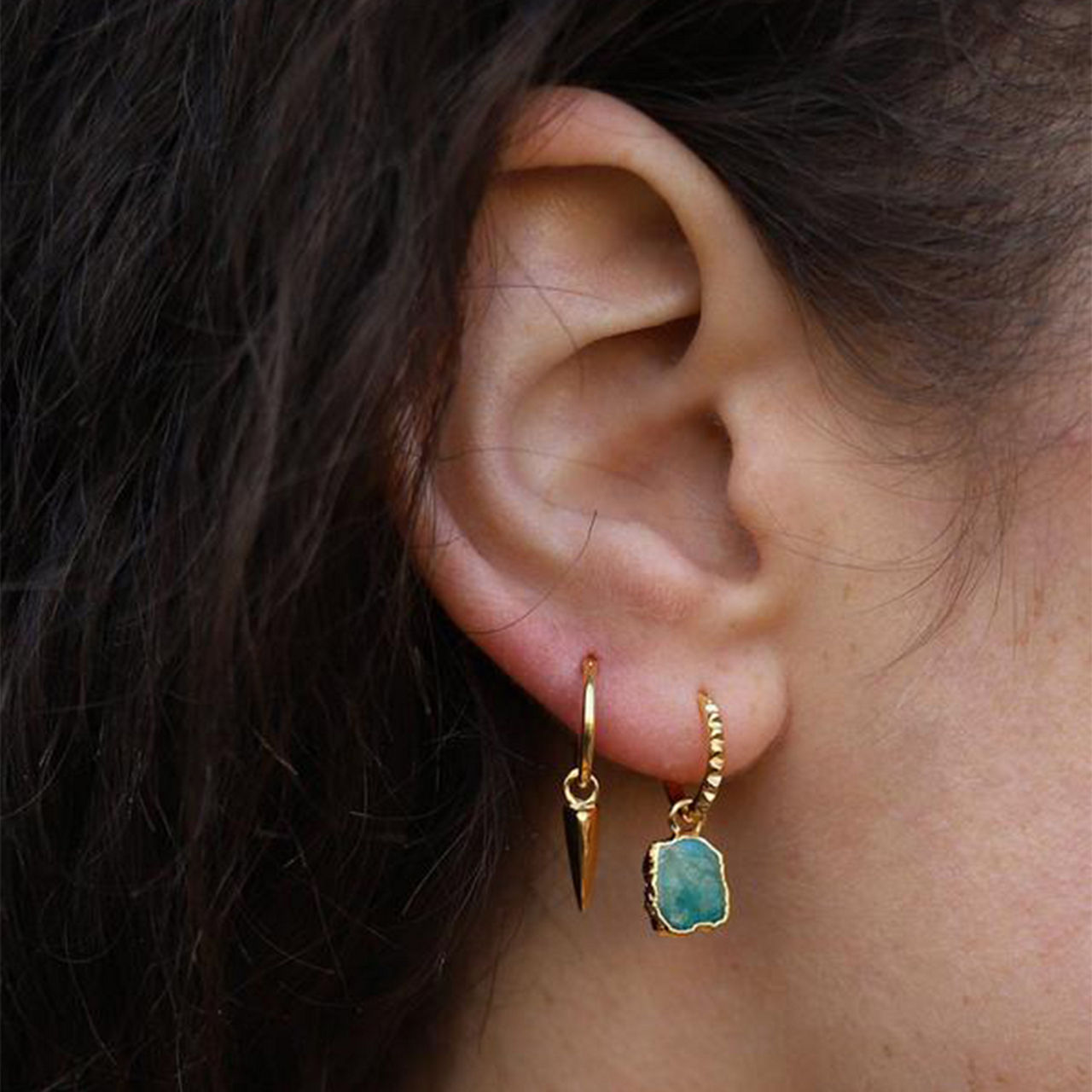 Product code: Amazonite gold mini pyramid charm hoop earrings sales